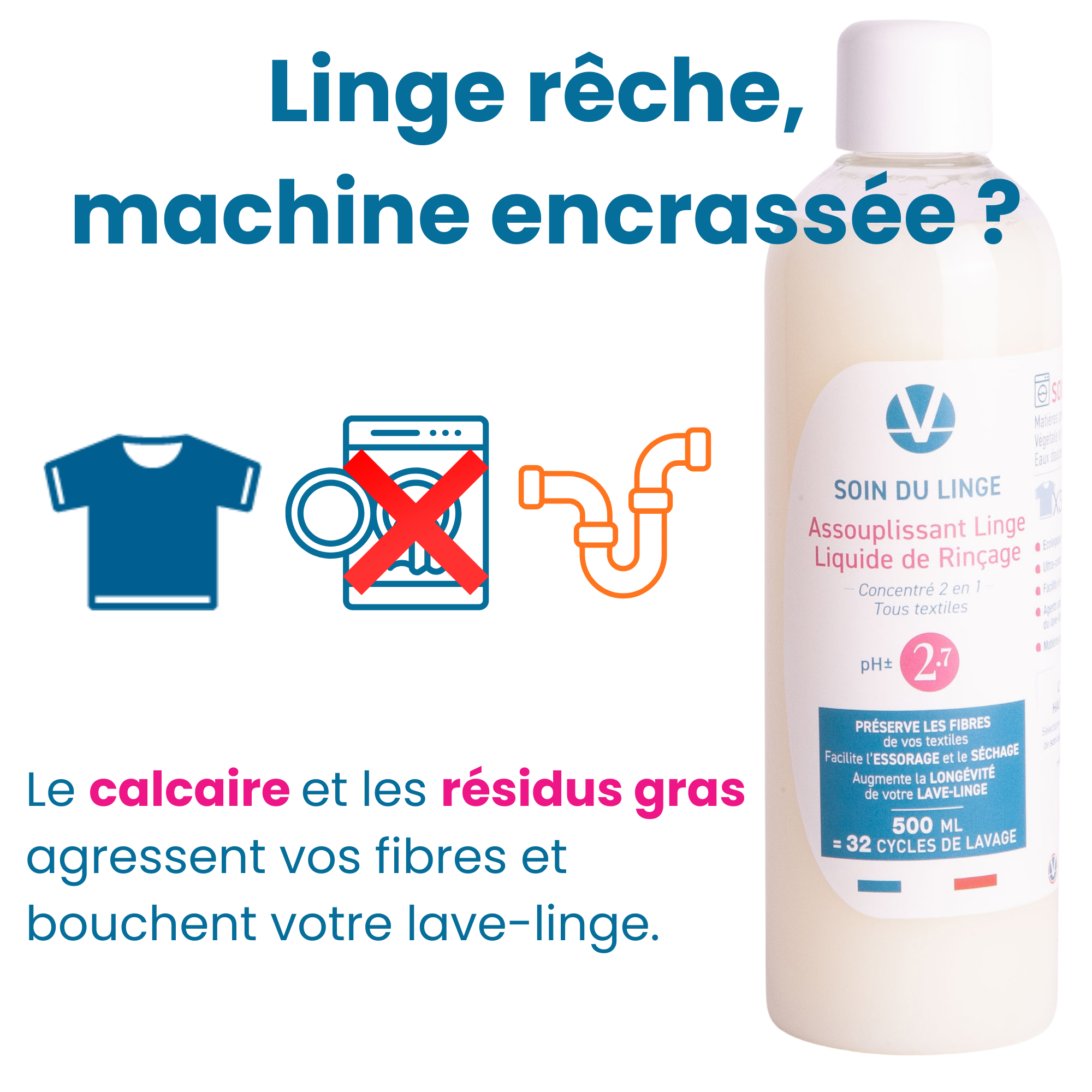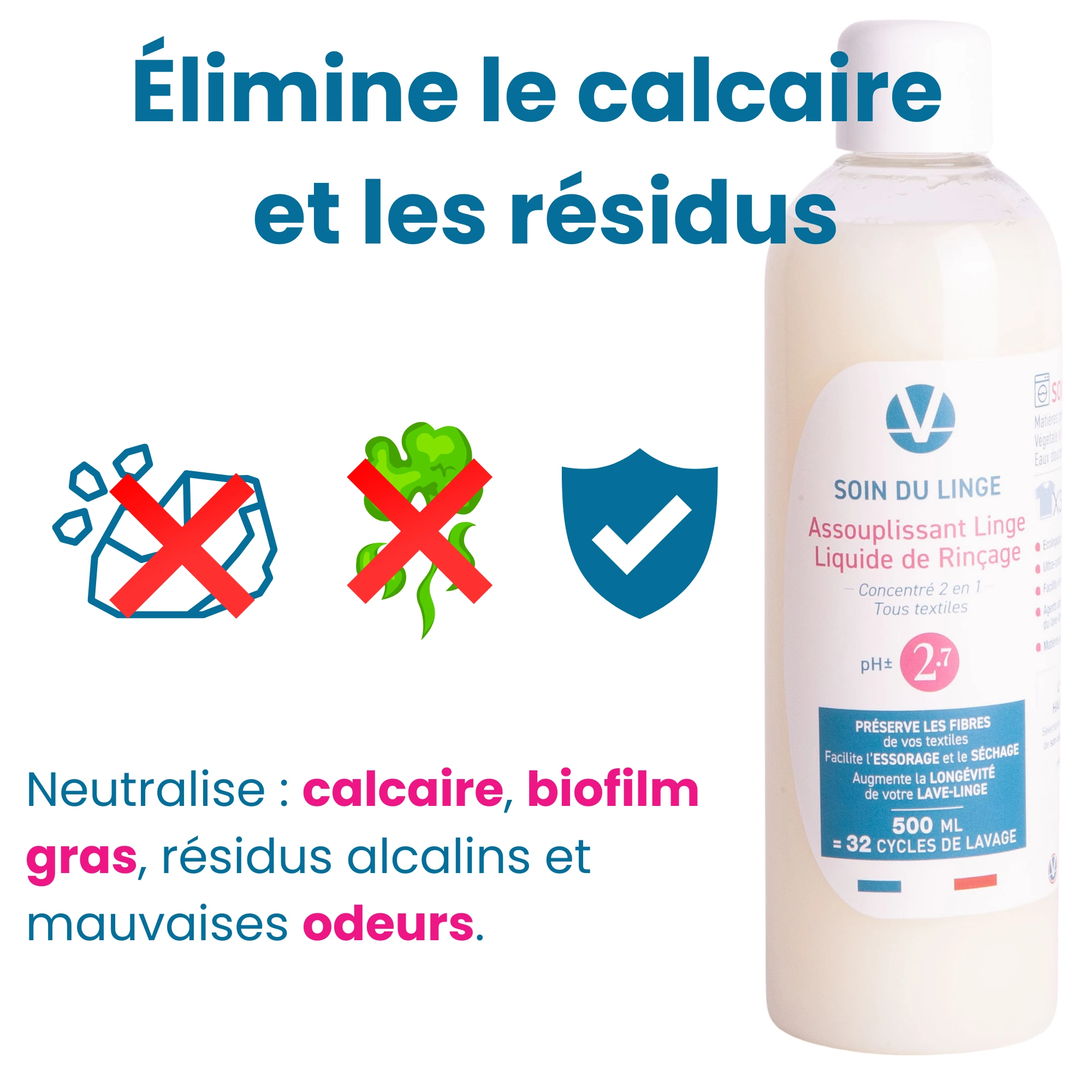 Pour entretenir votre machine à laver, Assouplissant Écologique Linge au pH acide de La Maison VHYG contient des agents séquestrant pour le calcaire, ce qui le rend encore plus efficace dans les régions où l’eau est calcaire. Enfin, si l’idée de fabriquer votre assouplissant “fait maison” vous séduit, sachez que notre assouplissant écologique est une alternative plus sûre, efficace et respectueuse de l’environnement.