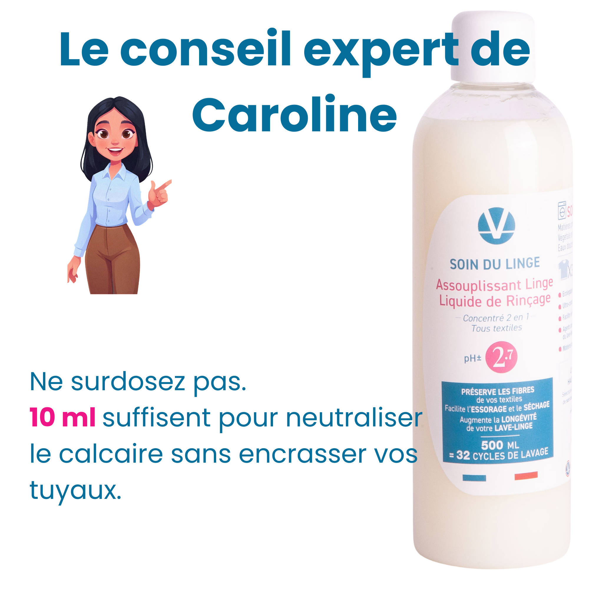 Utilisation Optimale : veillez à doser correctement l’assouplissant et à privilégier les lavages à charge maximale à basses températures. Cela favorise une meilleure dissolution de la lessive et de l’assouplissant, réduisant l’accumulation de résidus.