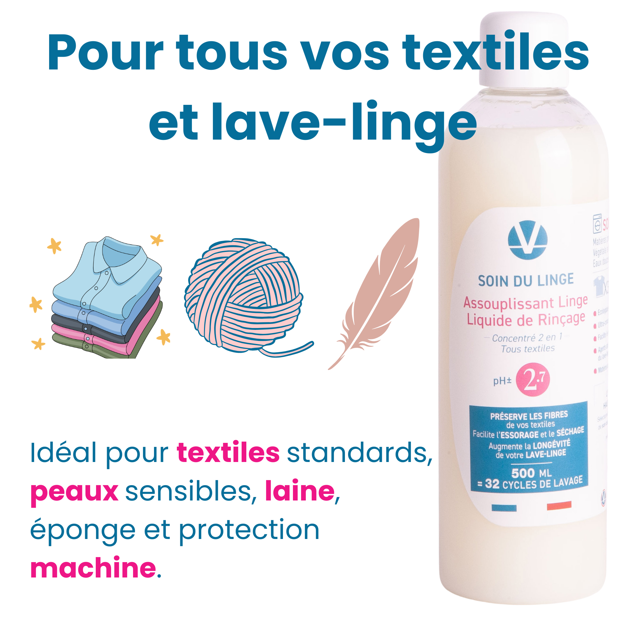 Notre assouplissant convient pour tout type de textile, y compris les laines et les couleurs.