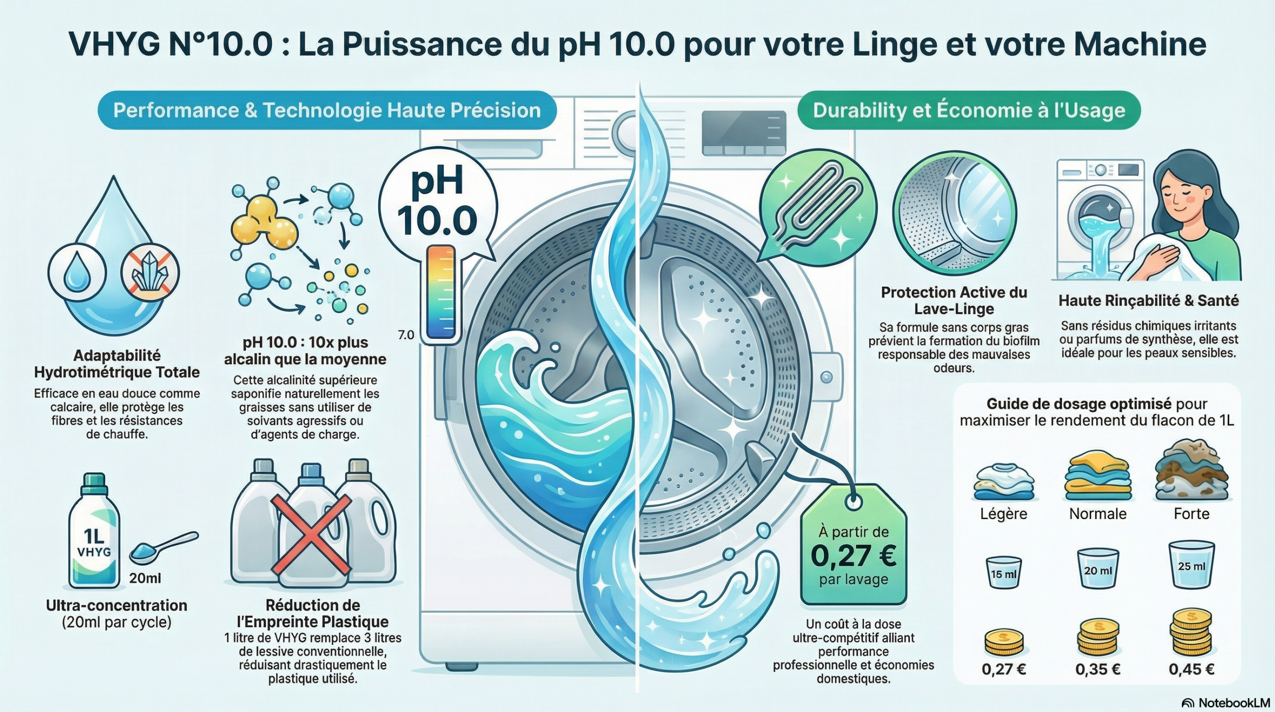 Économie : l’utilisation efficace à faible dose permet une économie considérable sur le long terme, réduisant le coût par cycle de lavage.