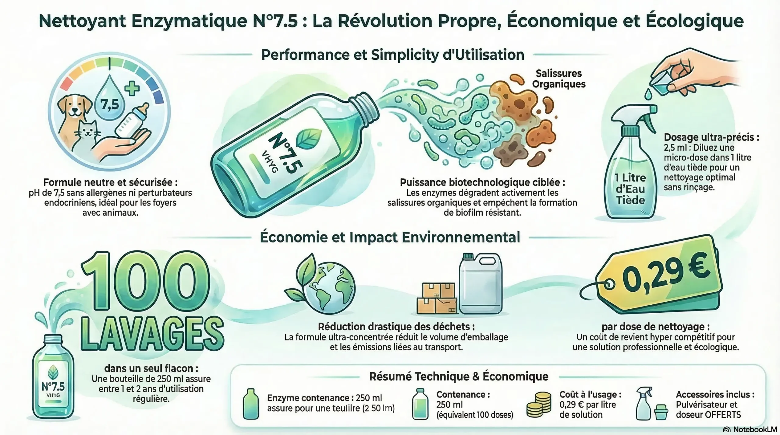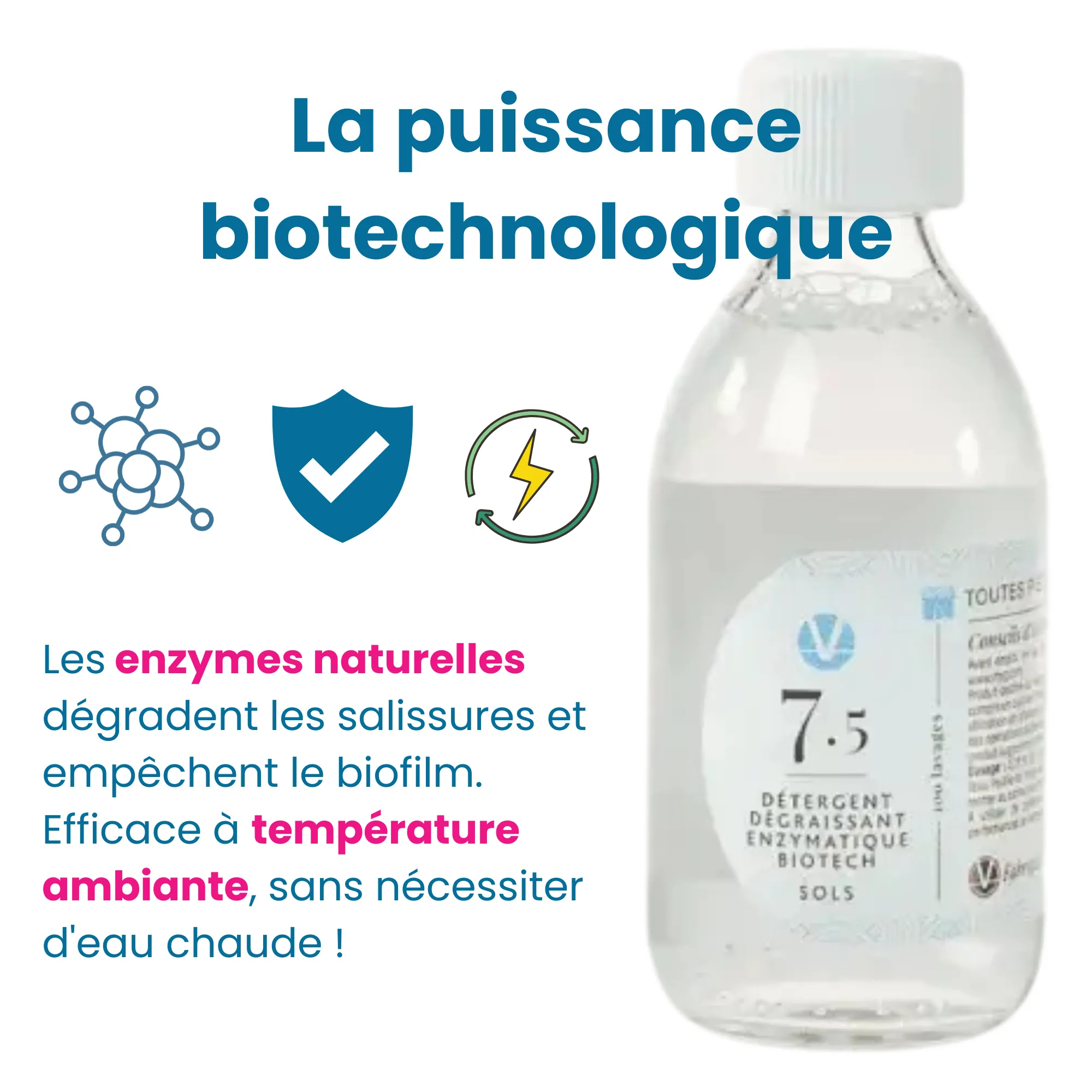 Je suis ravie de partager avec vous mes astuces expertes pour exploiter pleinement les avantages de notre Nettoyant Enzymatique Sols N°7.5. Ce produit d’entretien unique est une merveille de la technologie enzymatique, conçu spécifiquement pour un nettoyage profond de votre maison tout en minimisant son impact sur l’environnement et sur votre budget.