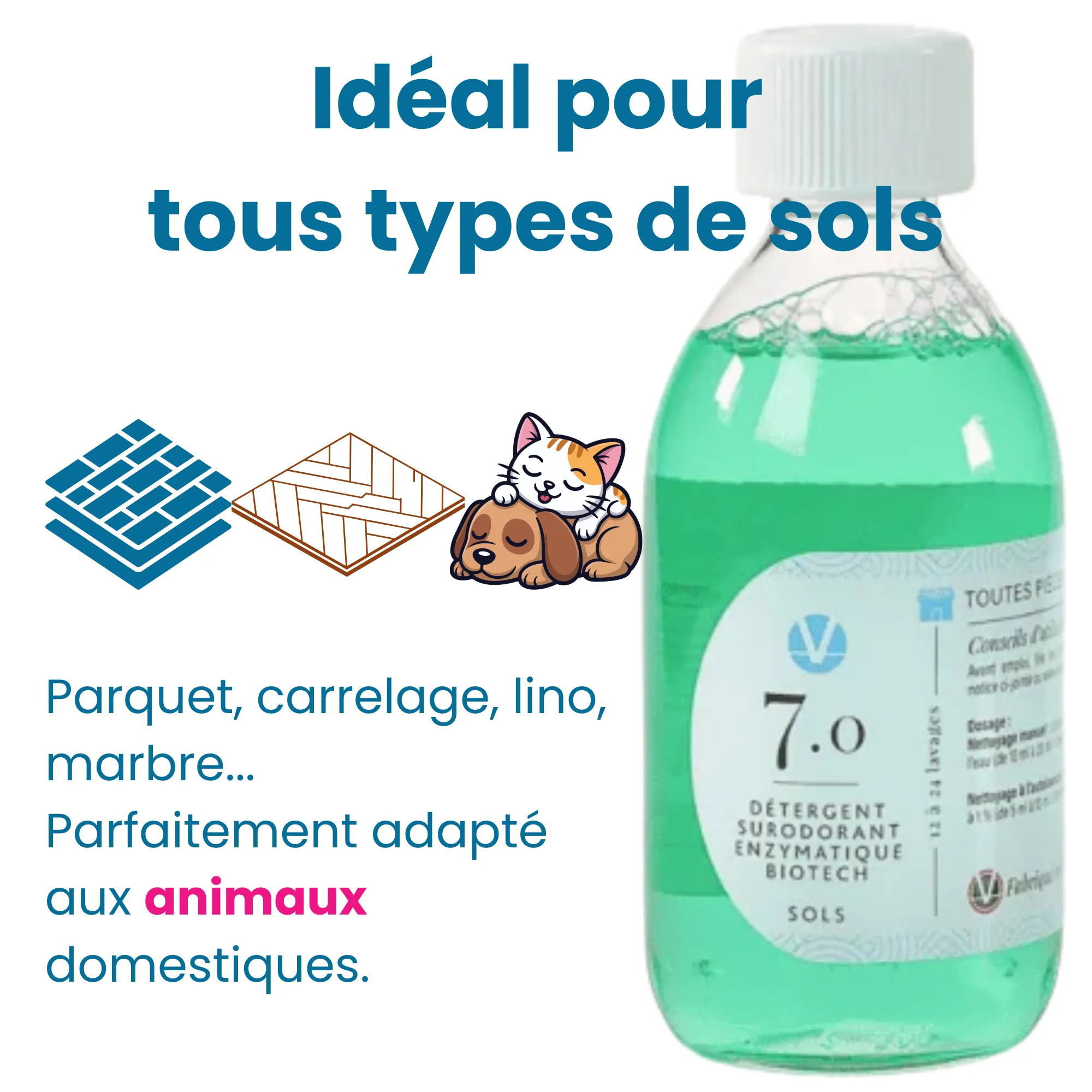 En adoptant le Nettoyant Biotechnologique Surodorant Sols N°7.0, vous faites un choix bénéfique non seulement pour l’environnement mais aussi pour le bien-être de tous les membres de la famille, y compris nos amis les animaux.