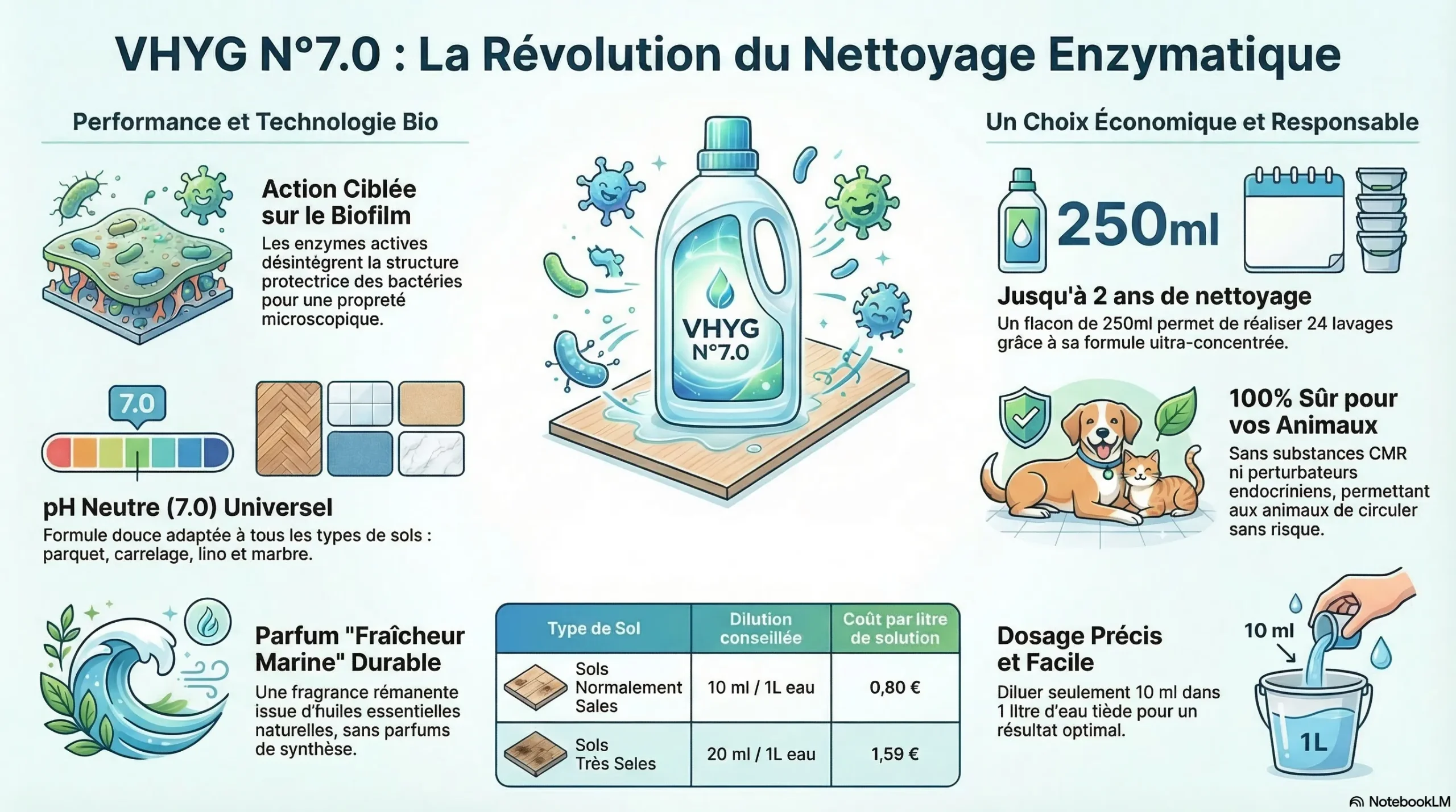 Choisissez VHYG pour des sols impeccables et agréablement parfumés. Commandez dès maintenant pour un nettoyage efficace, écologique et sûr pour vos animaux !